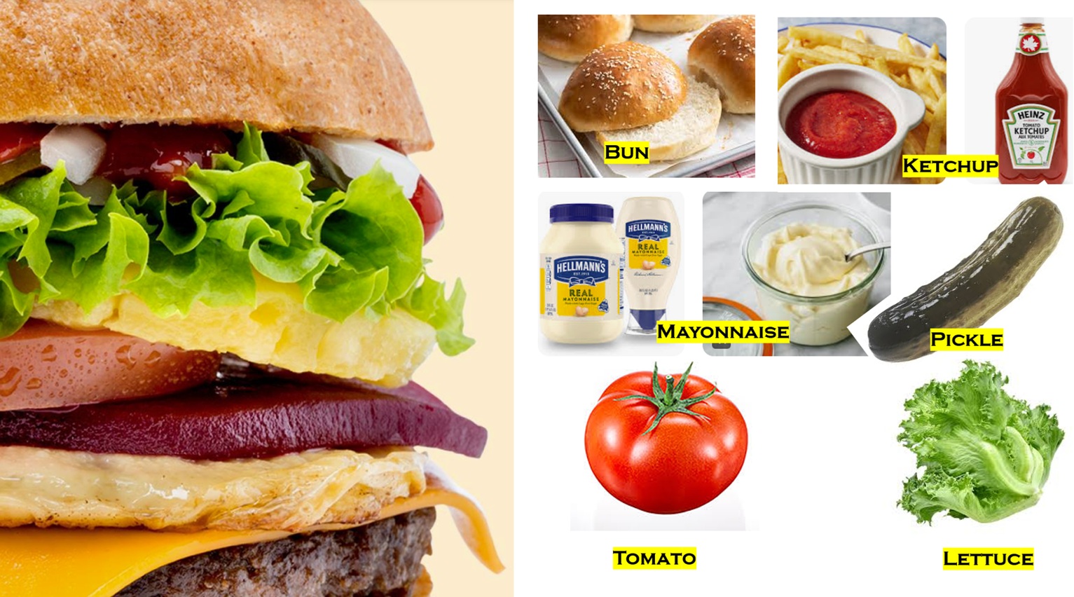 – I’ll have cheese, lettuce, tomato, pickle, and mayonnaise.