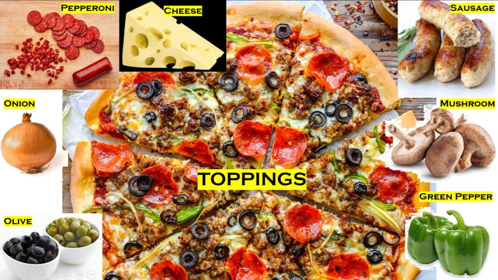 Topping, pepperoni, onion, mushroom, cheese, cash, lettuce, tomato, pickle, mayonnaise, French fries, cents, receipt, order.