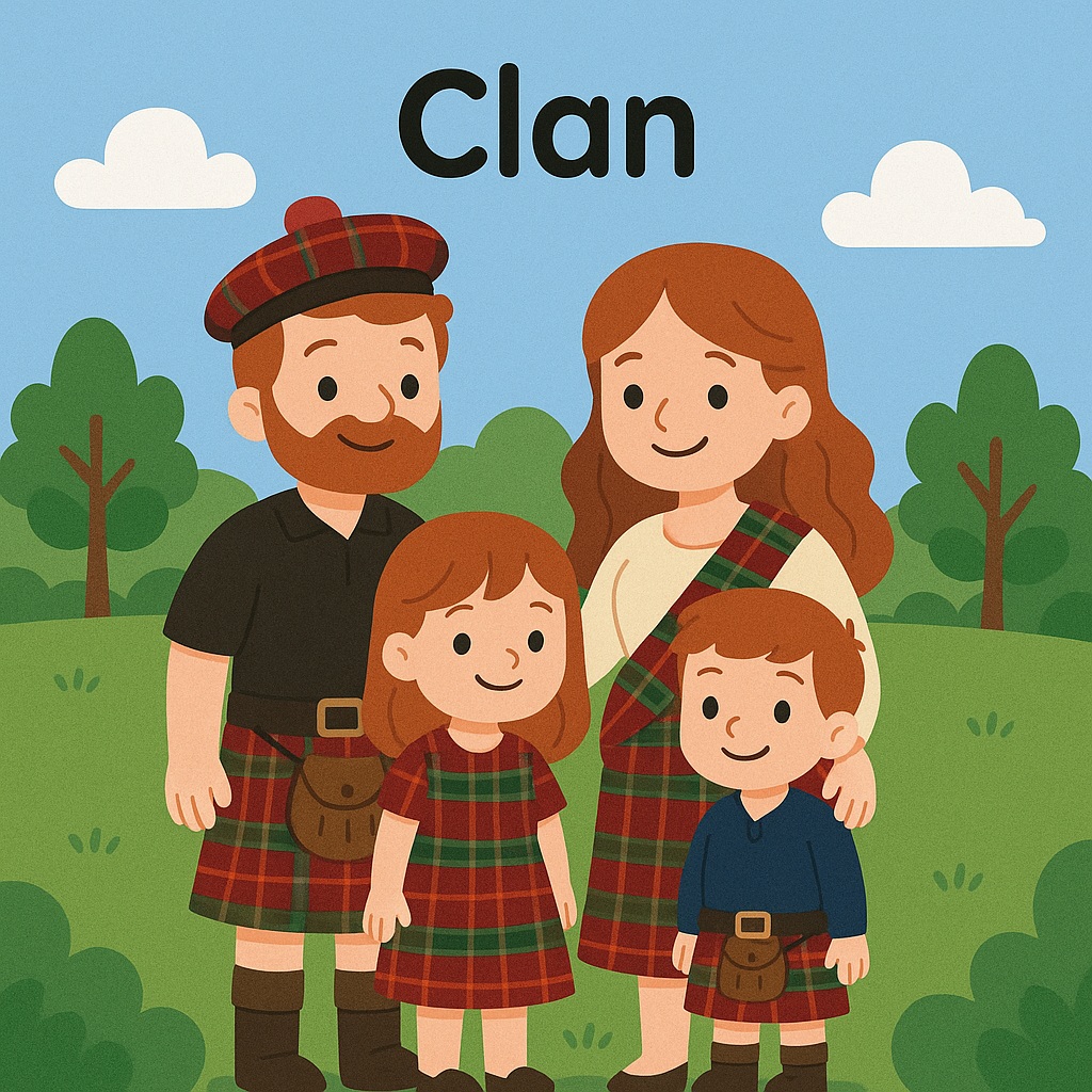 clan – a big family or group that stays together.“All the bears in the forest are part of one bear clan.”