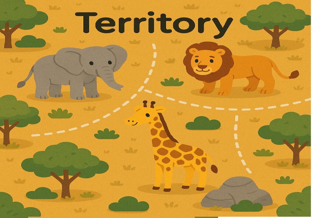 - territory – an area of land that an animal or group protects as its home.